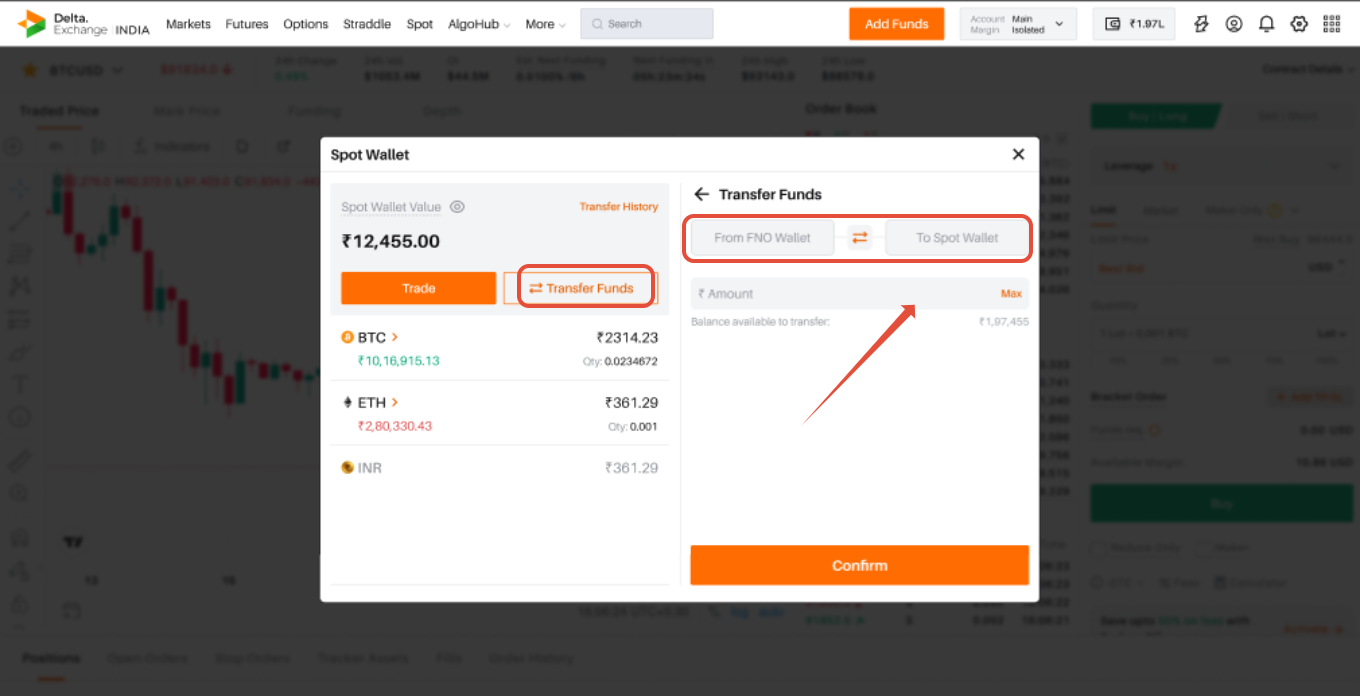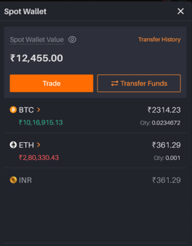 Users can transfer INR from their FNO Wallet to the Spot Wallet instantly